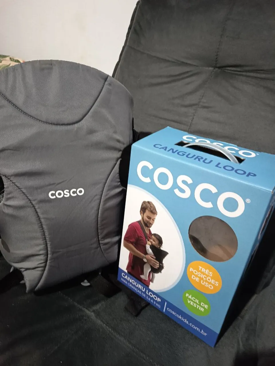 Canguru Cosco Loop: Conforto e praticidade para você e seu bebê! Com três posições de uso e fácil de vestir, ideal para passeios e momentos de carinho. Leve seu pequeno com segurança e estilo!