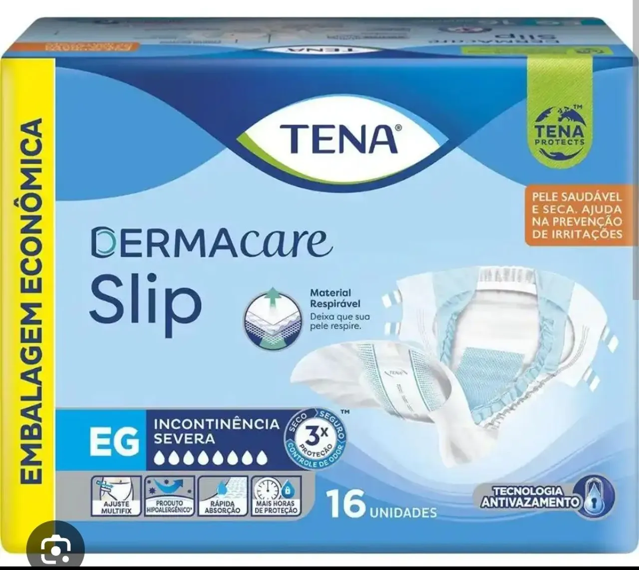 2 pacotes de Fralda Geriátrica Descartável Tena Dermacare Slip Incontinência Urinária Severa EG 16 Unidades