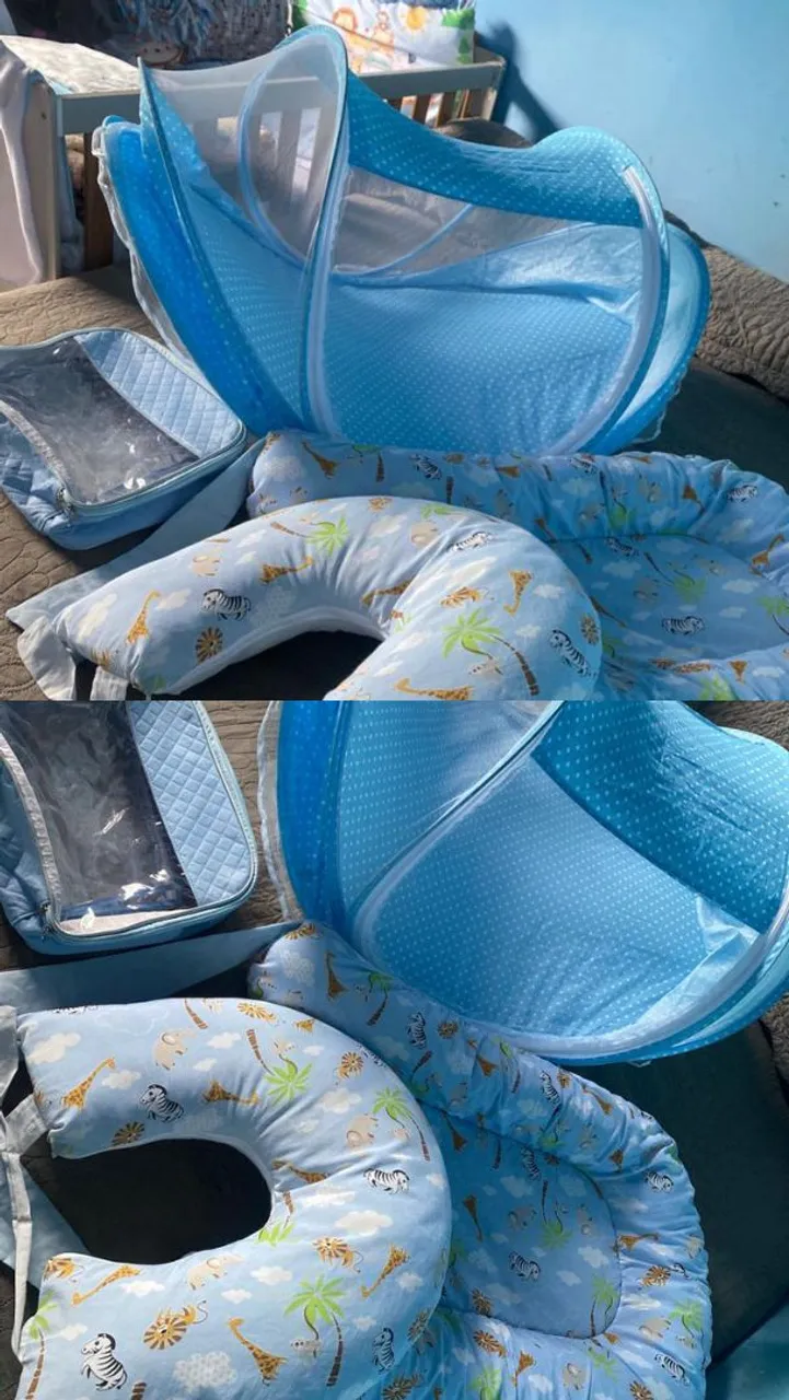 Kit bebê completo e perfeito para o conforto do seu pequeno! Inclui berço portátil com mosquiteiro, almofada de amamentação e outros acessórios essenciais. Tudo em ótimo estado e pronto para uso.
