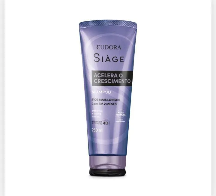 Experimente o Shampoo Eudora Siàge Acelera o Crescimento e conquiste fios mais longos e saudáveis! Sua fórmula exclusiva, com tecnologia Affinite 4D, acelera o crescimento em até 3 cm em 2 meses, fortalecendo e revitalizando seus cabelos. Sinta a diferença e revele a beleza que existe em você!