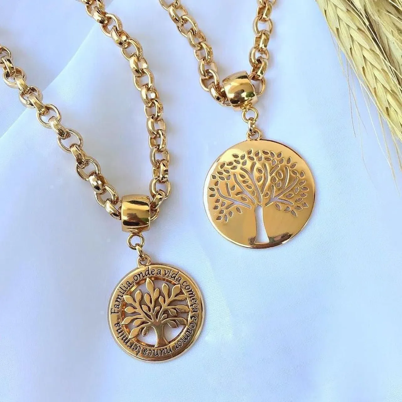Encante-se com este colar dourado que irradia elegância e significado. O pingente em formato de árvore da vida simboliza a conexão familiar e o amor eterno. Uma joia perfeita para expressar sentimentos e celebrar momentos especiais.