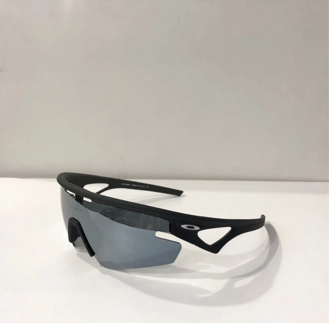 Óculos Oakley esportivo com design moderno e lentes espelhadas de alta qualidade.