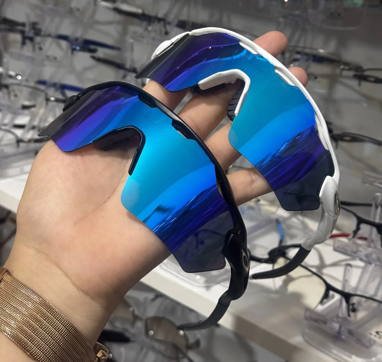 Óculos de sol esportivo com design moderno e lentes espelhadas que oferecem proteção e estilo para suas atividades ao ar livre. Perfeito para quem busca conforto e performance. Aceito todos os cartões aceito pix respondi muito rapidamente facilito entregar em todos os terminais ZAP só chama 9851... ver número @ REI DO SUÉTER SLZ ENVIAMOS PARA TODO TERRITÓRIO BRASILEIRO ?