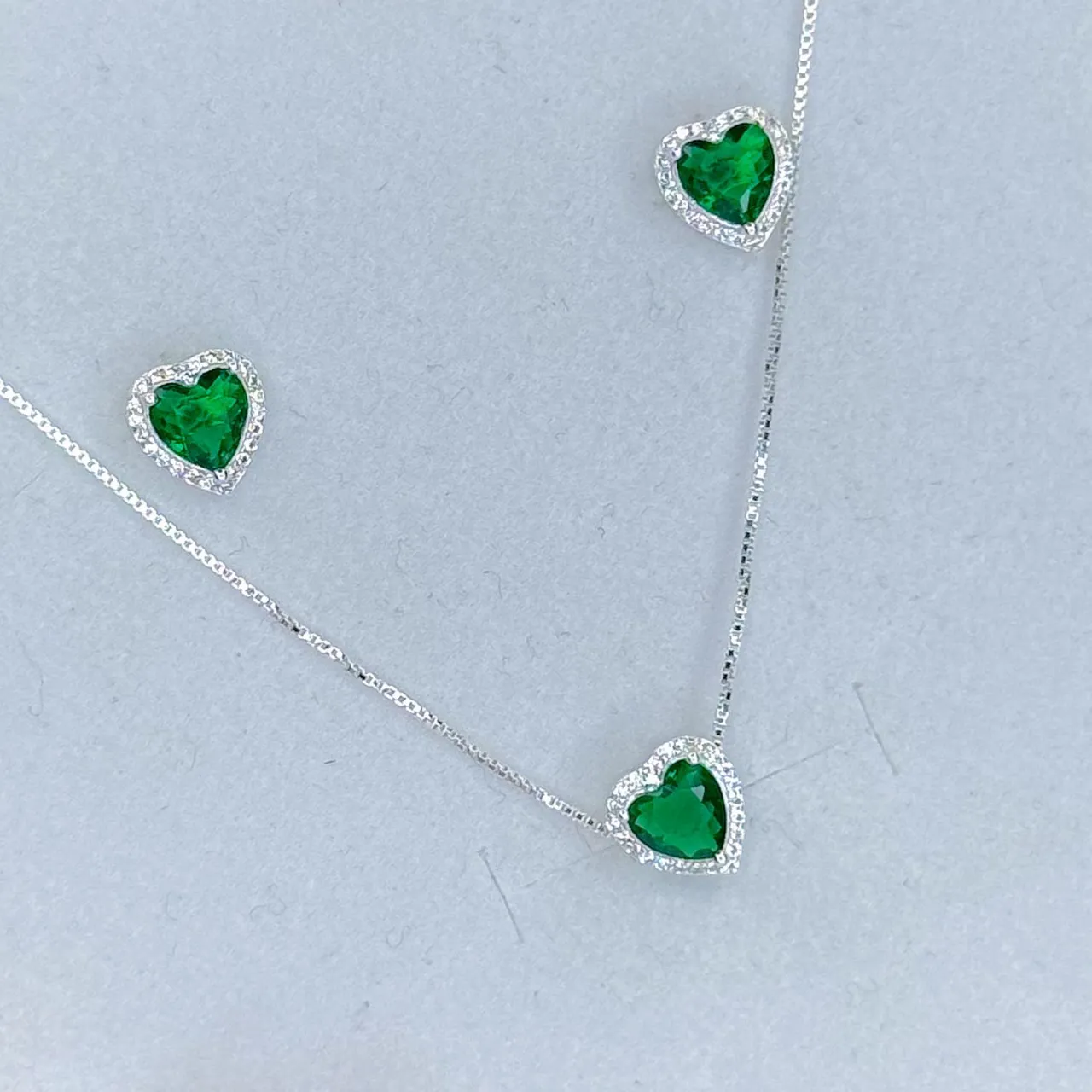 Conjunto de colar e brincos em prata 925 com design de coração, perfeito para adicionar um toque de elegância e sofisticação ao seu visual. Ideal para presentear alguém especial ou para se presentear!