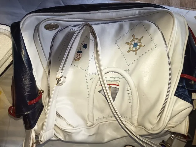 Linda bolsa com design náutico, perfeita para quem busca estilo e praticidade. Detalhes em branco e azul, ideal para diversas ocasiões.