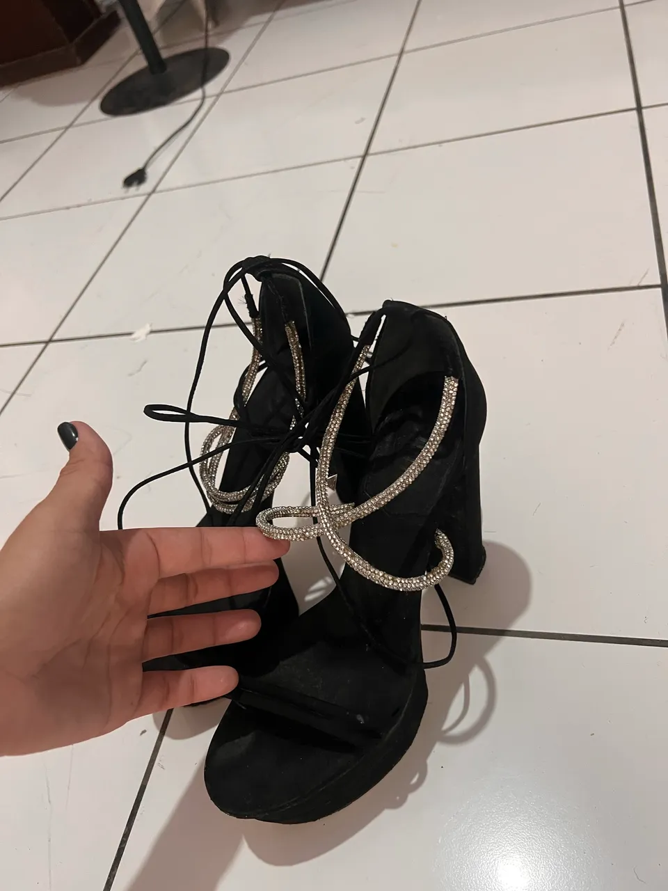 Sapato preto com detalhes em strass, perfeito para ocasiões especiais. Adicione um toque de elegância e sofisticação ao seu visual!