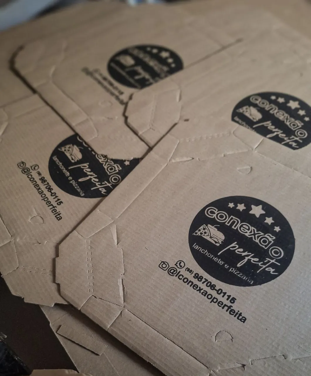 Caixas de pizza personalizadas para sua pizzaria ou lanchonete. Design exclusivo e qualidade garantida para valorizar seus produtos e atrair mais clientes!