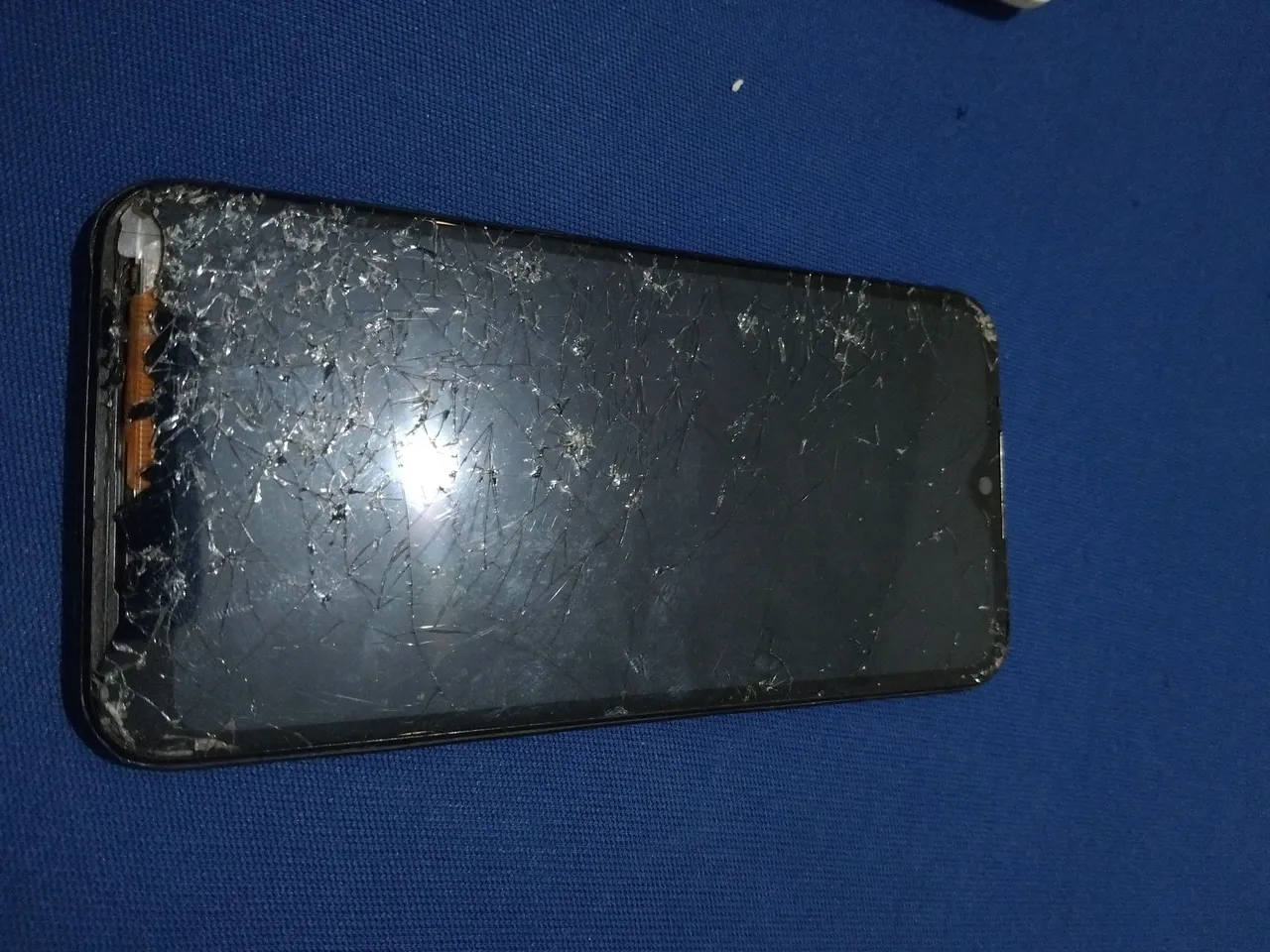 Tela de celular danificada, para reposição de peças ou conserto. Ele ainda liga so esta com a tela quebrada.