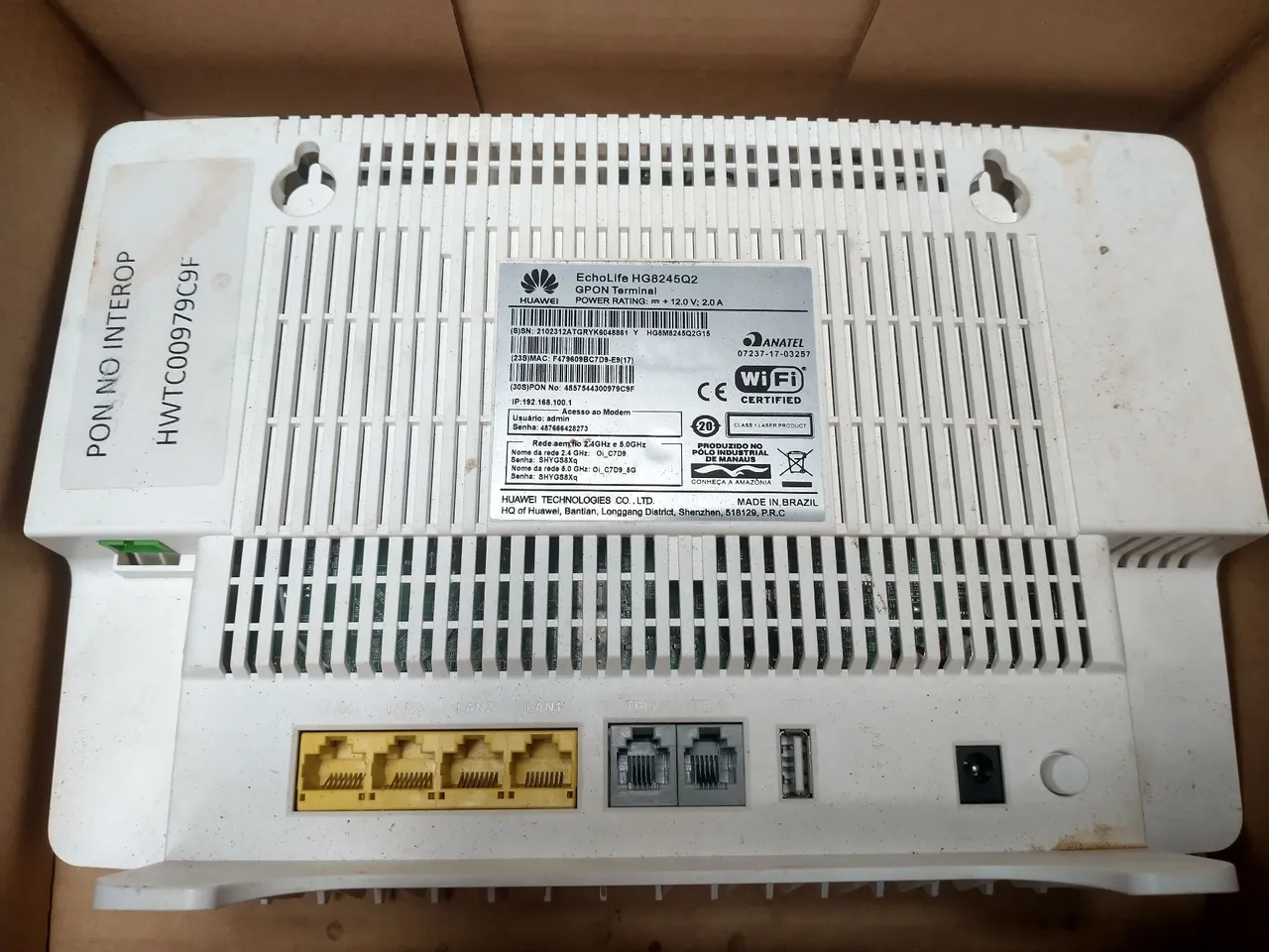 Modem Huawei EchoLife HG8245Q2, ideal para conectar seus dispositivos à internet com velocidade e estabilidade. Perfeito para uso doméstico ou escritório, garantindo uma conexão confiável para suas atividades online.