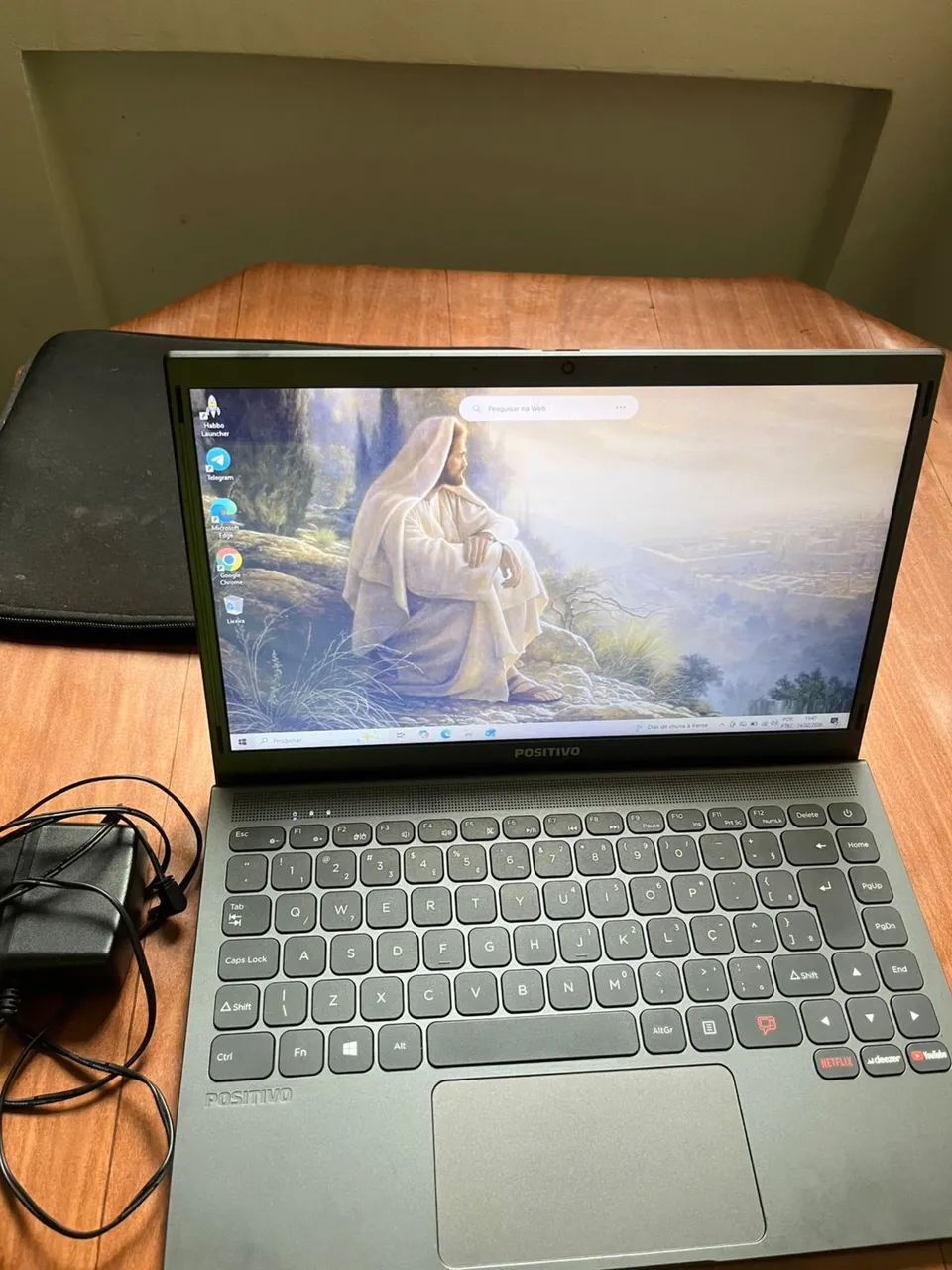 Notebook Positivo conservado, acompanha carregador e capinha protetora pra transportar, demora pra descarregar. Ideal para estudos e trabalho. Leve, compacto e com design moderno. Perfeito para suas tarefas diárias.