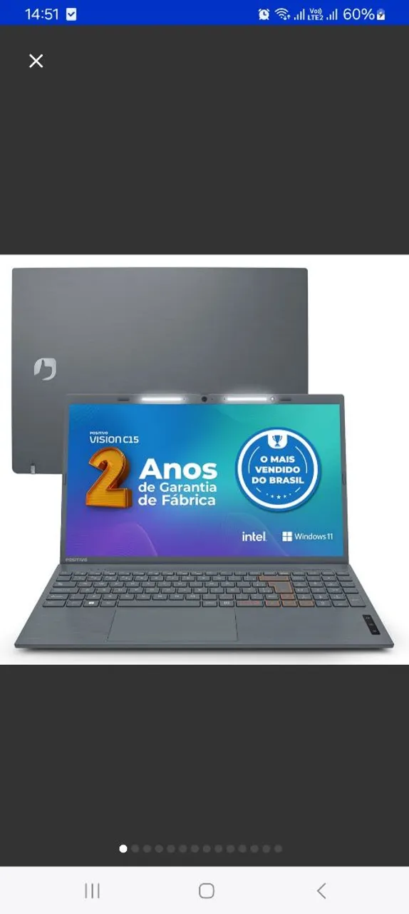 Notebook Positivo Vision C15, com 2 anos de garantia de fábrica! Ideal para suas tarefas diárias com desempenho e confiabilidade.
