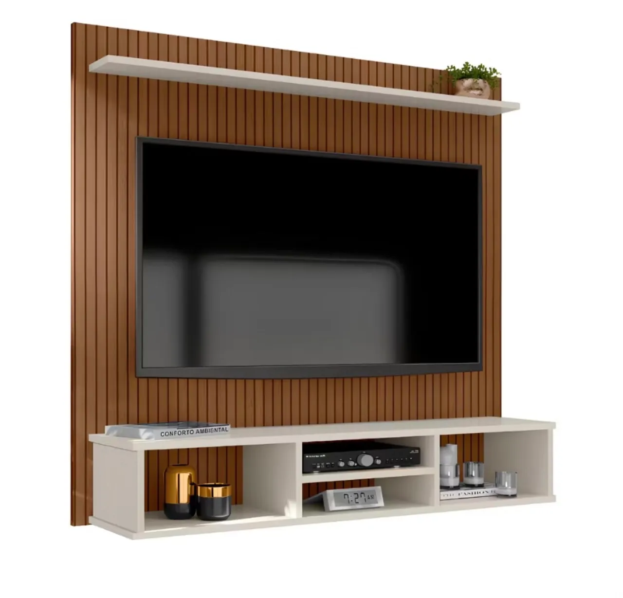 Transforme sua sala com este painel ripado moderno e elegante! Perfeito para TVs de at é 50 polegadas, ele combina design sofisticado e funcionalidade. Adicione um toque de estilo e organização ao seu espaço!