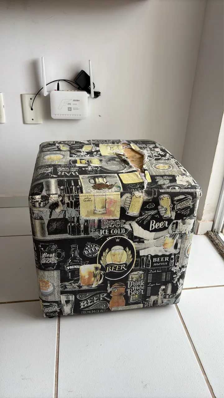 Aproveite este pufe usado com um design temático de cerveja! Perfeito para adicionar um toque de personalidade e conforto ao seu espaço.