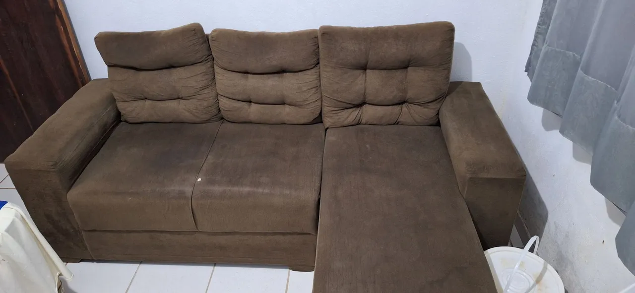 Sofá confortável e espaçoso, ideal para relaxar e receber visitas. Perfeito para sua sala!