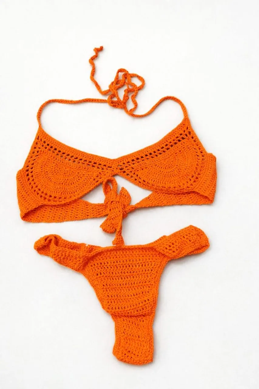 Desfrute do sol com estilo! Este biquíni de crochê artesanal em formato meia lua é a escolha perfeita para um visual praiano charmoso e confortável.