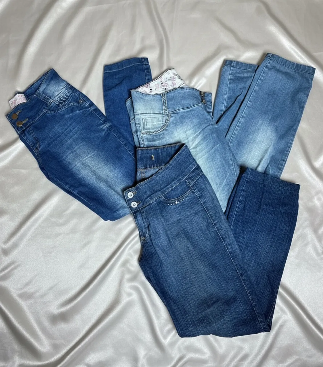 Combo de calças jeans incríveis para você arrasar! Conforto e estilo em um só produto. Renove seu guarda-roupa com peças versáteis e cheias de atitude. Vestem 44!