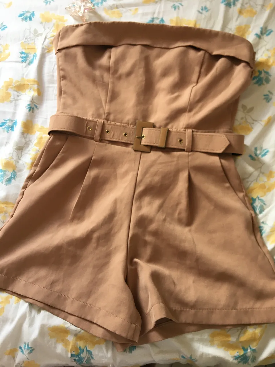 Macaquinho em alfaiataria no tamanho M, acompanha cinto na cor nude caramel. Pouco usado, o zíper precisa ser trocado. Não faço entrega somente retirada no meu endereço ou por Uber moto