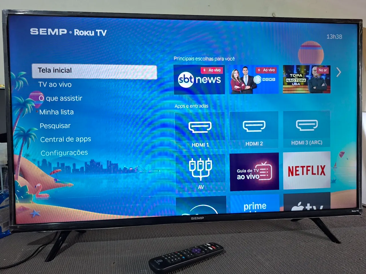 Smart TV Semp Roku TV de 43 polegadas, perfeita para uma experiência de entretenimento imersiva. Desfrute de imagens nítidas, cores vibrantes e acesso fácil a diversos aplicativos e canais. Leve a diversão para sua casa!